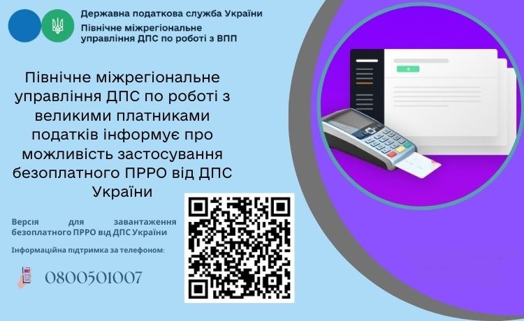 Північне міжрегіональне управління ДПС по роботі з великими платниками податків інформує про можливість застосування безоплатного ПРРО від ДПС України
