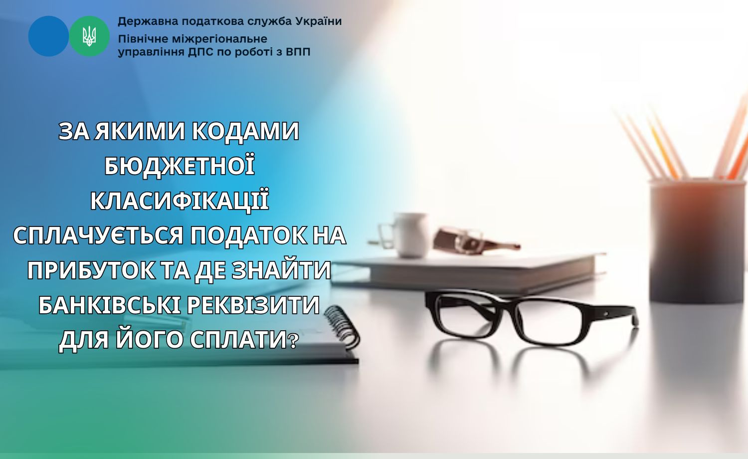 Північне міжрегіональне управління ДПС по роботі з великими платниками податків звертає увагу, що Наказом Міністерства фінансів України від 14.01.2011 № 11 «Про бюджетну класифікацію» (зі змінами) визначено класифікацію доходів бюджету, згідно з якою встановлено коди та найменування податків та зборів. Зокрема для сплати податку на прибуток підприємств визначені коди бюджетної класифікації: