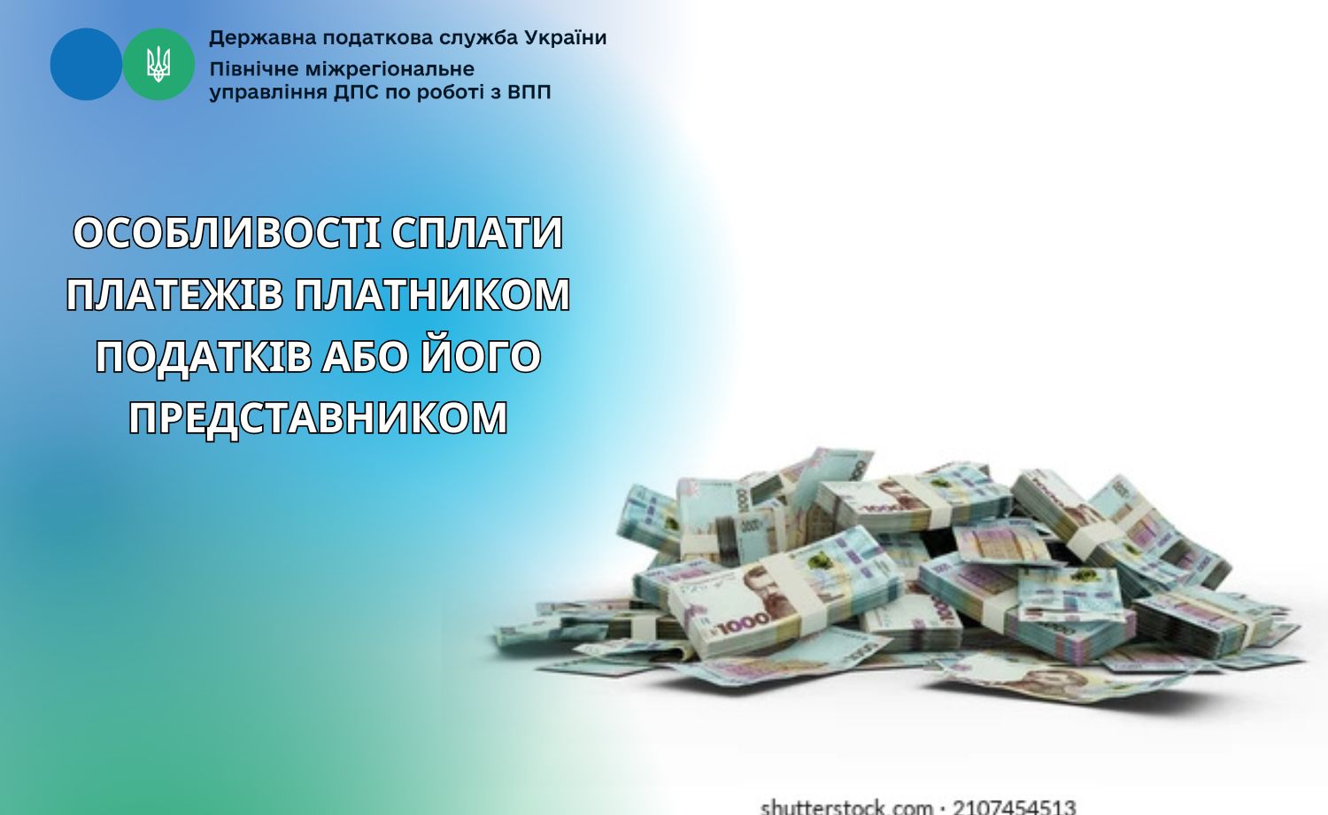 Північне міжрегіональне управління ДПС по роботі з великими платниками податків повідомляє, що  відповідно до пункту 38.2 статті 38 Податкового кодексу України сплата податку та збору здійснюється платником податку безпосередньо, а у випадках, передбачених податковим законодавством, - податковим агентом, або представником платника податку.