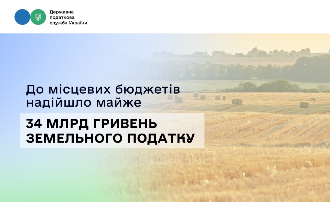 До місцевих бюджетів надійшло майже 34 млрд гривень земельного податку