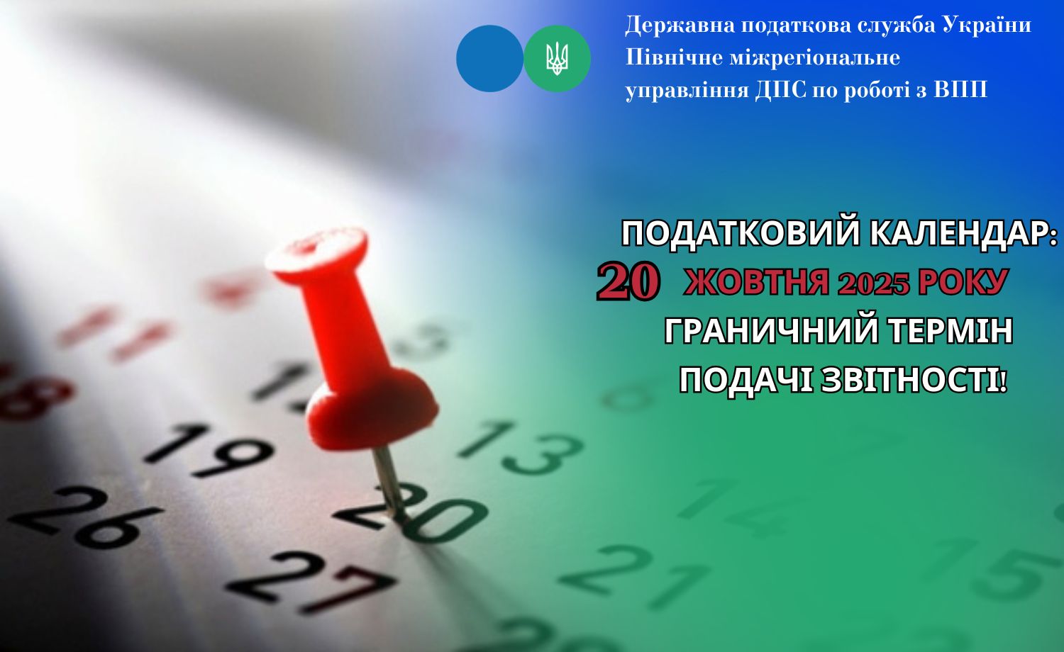 Податковий календар: 20 жовтня 2025 року граничний термін подачі звітності!