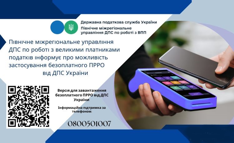 Північне міжрегіональне управління ДПС по роботі з великими платниками податків інформує про можливість застосування безоплатного ПРРО від ДПС України