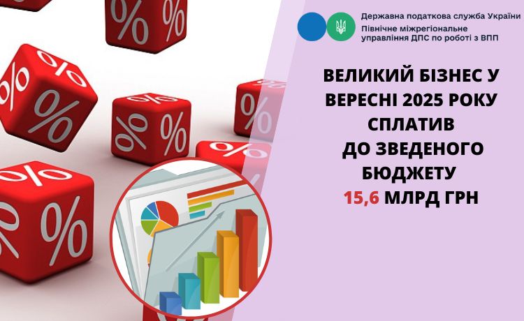Великі платники продовжують підтримувати економіку України. Кожна гривня, сплачена до бюджету, - це внесок у забезпечення безпеки та стабільності нашої держави. Протягом вересня 2025 року платники, які перебувають на обліку в Північному міжрегіональному управлінні ДПС по роботі з великими платниками податків, сплатили до зведеного бюджету 15,6 млрд грн.