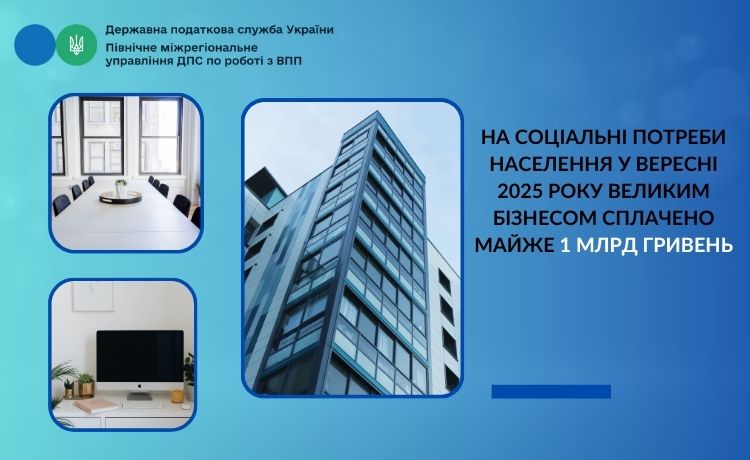 Потягом вересня 2025 року платниками, які знаходяться на обслуговуванні в Північному міжрегіональному управлінні ДПС по роботі з великими платниками податків, було сплачено майже 1 млрд гривень єдиного внеску на загальнообов’язкове державне соціальне страхування.