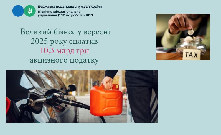 Серед платників, які обслуговуються в Північному міжрегіональному управлінні ДПС по роботі з великими платниками податків, продовжується тенденція зростання надходжень акцизного податку з вироблених та ввезених підакцизних товарів. У вересні 2025 року до загального фонду державного бюджету надійшло 10,3 млрд грн цього податку.