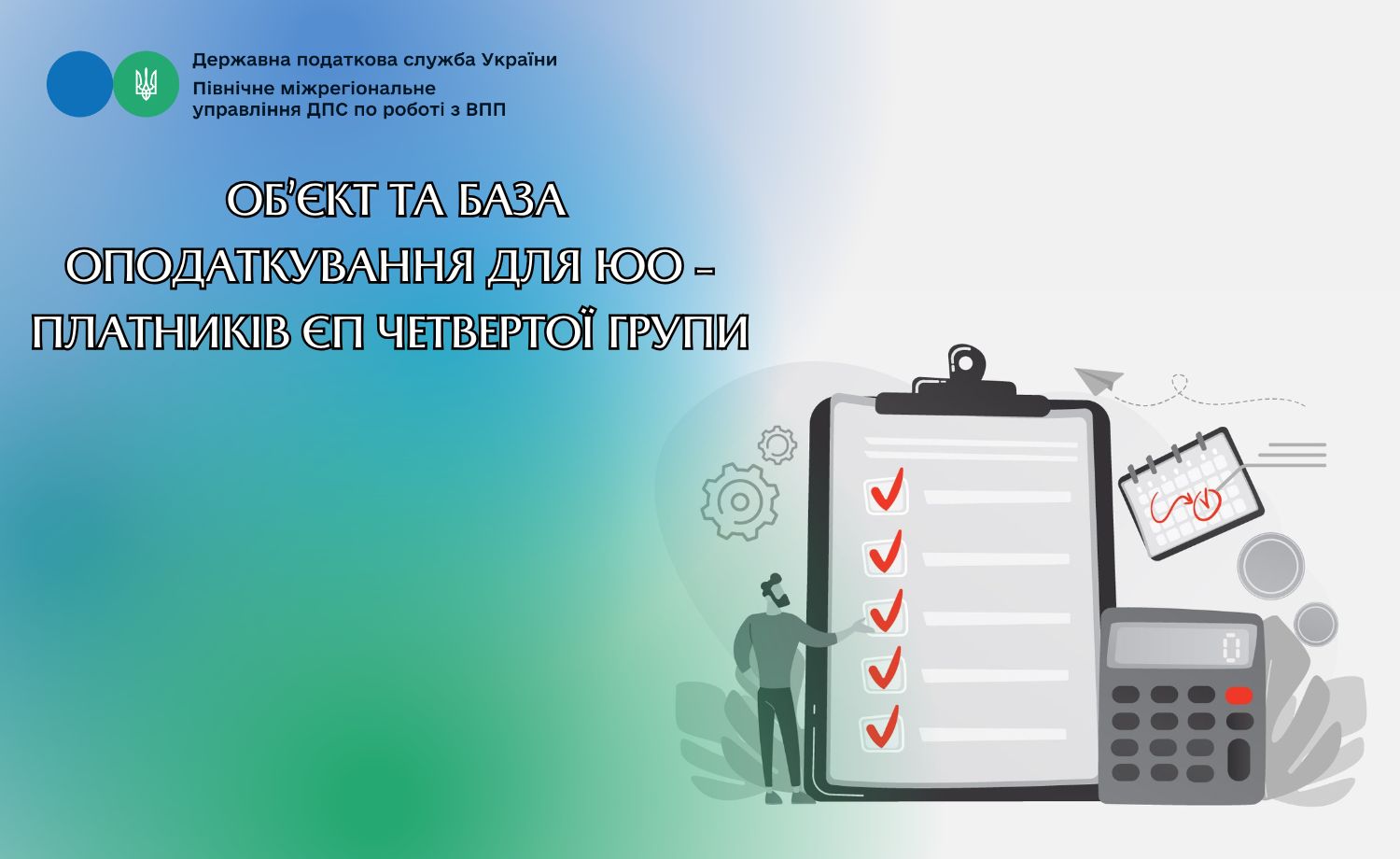 Північне міжрегіональне управління ДПС по роботі з великими платниками податків звертає увагу, що відповідно до абзацу першого п. 292 прим. 1.1 ст. 292 прим. 1 Податкового кодексу України від 02 грудня 2010 року № 2755-VI (далі – ПКУ) об’єктом оподаткування для платників єдиного податку четвертої групи є площа сільськогосподарських угідь (ріллі, сіножатей, пасовищ і багаторічних насаджень) та/або земель водного фонду (внутрішніх водойм, озер, ставків, водосховищ), що перебуває у власності сільськогосподарського товаровиробника або надана йому у користування, у тому числі на умовах оренди або емфітевзису.