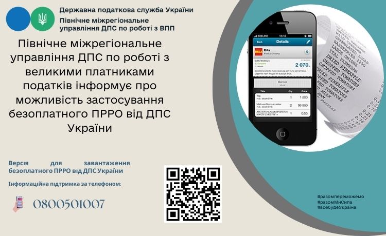 Північне міжрегіональне управління ДПС по роботі з великими платниками податків інформує про можливість застосування безоплатного ПРРО від ДПС України