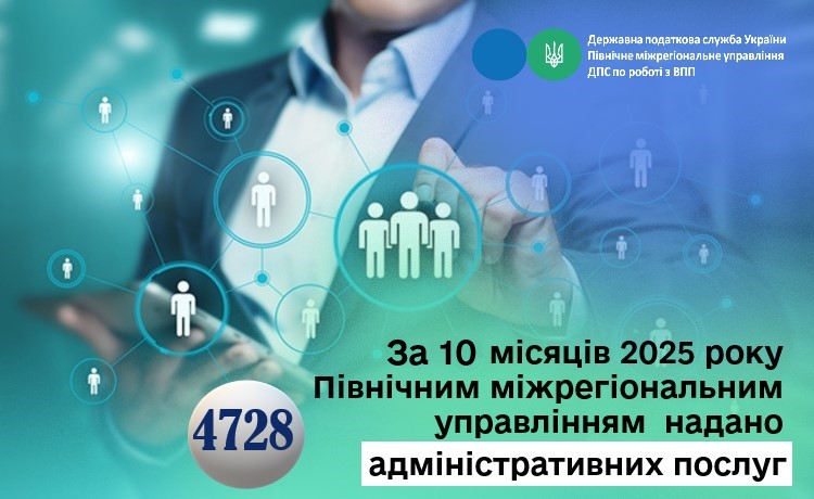 Протягом січня-жовтня 2025 року Північним міжрегіональним управлінням ДПС по роботі з великими платниками податків було надано великим платникам 4728 адміністративних послуг, зокрема: