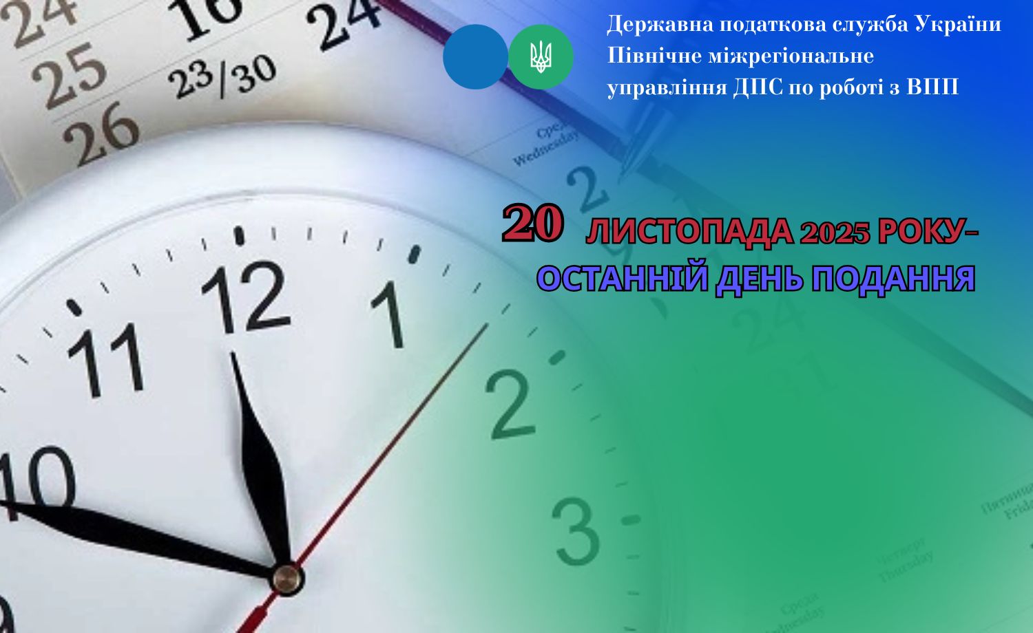 Північне міжрегіональне управління ДПС по роботі з великими платниками податків нагадує платникам податків, що 19 листопада – останній день сплати: