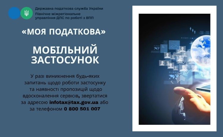 Північне міжрегіональне управління ДПС по роботі з великими платниками податків інформує, що для зручності та допомоги платникам податків Державна податкова служба України розробила відеоролик «Мобільний застосунок «Моя податкова»: отримання інформації з реєстрів ДПС».