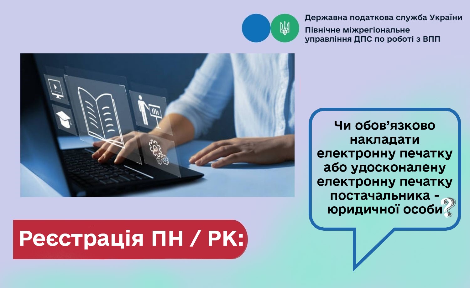 При реєстрації в ЄРПН податкової накладної / розрахунку коригування кваліфікована електронна печатка або удосконалена електронна печатка постачальника (продавця), що є юридичною особою накладається за її наявності.