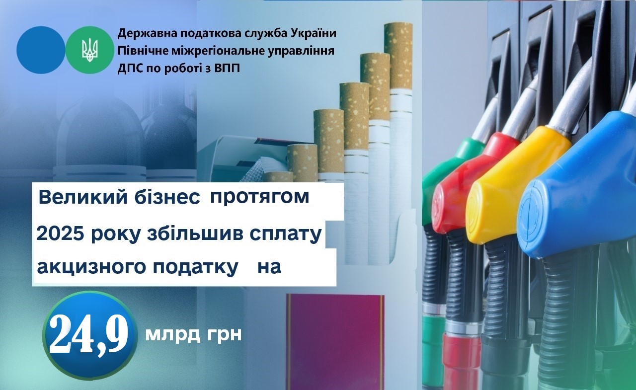 Великий бізнес у 2025 році збільшив сплату акцизного податку на 24,9 млрд гривень