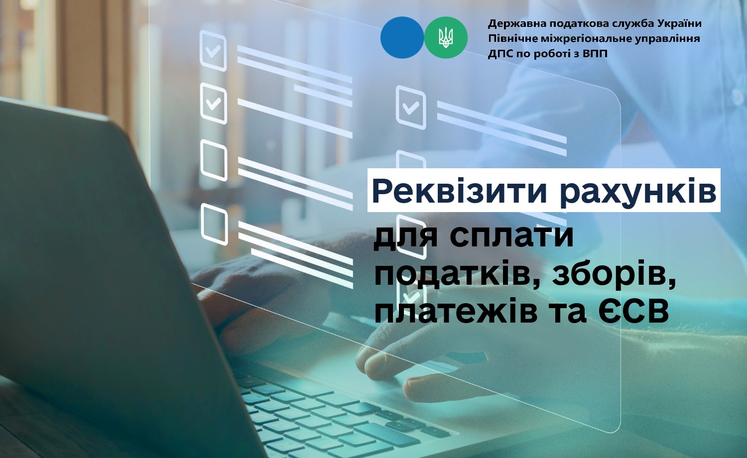 Північне міжрегіональне управління ДПС по роботі з великими платниками податків повідомляє, що актуальні реквізити рахунків для сплати податків, зборів, платежів до державного та місцевого бюджетів, а також рахунки для сплати єдиного внеску на загальнообов'язкове державне соціальне страхування, відкриті Державною казначейською службою України, розміщенні на офіційному сайті Державної податкової служби України в розділі «Рахунки для сплати платежів» «Північне міжрегіональне управління ДПС по роботі з великими платниками податків» за посиланням https://nvp.tax.gov.ua/rahunki-dlya-splati-platejiv.