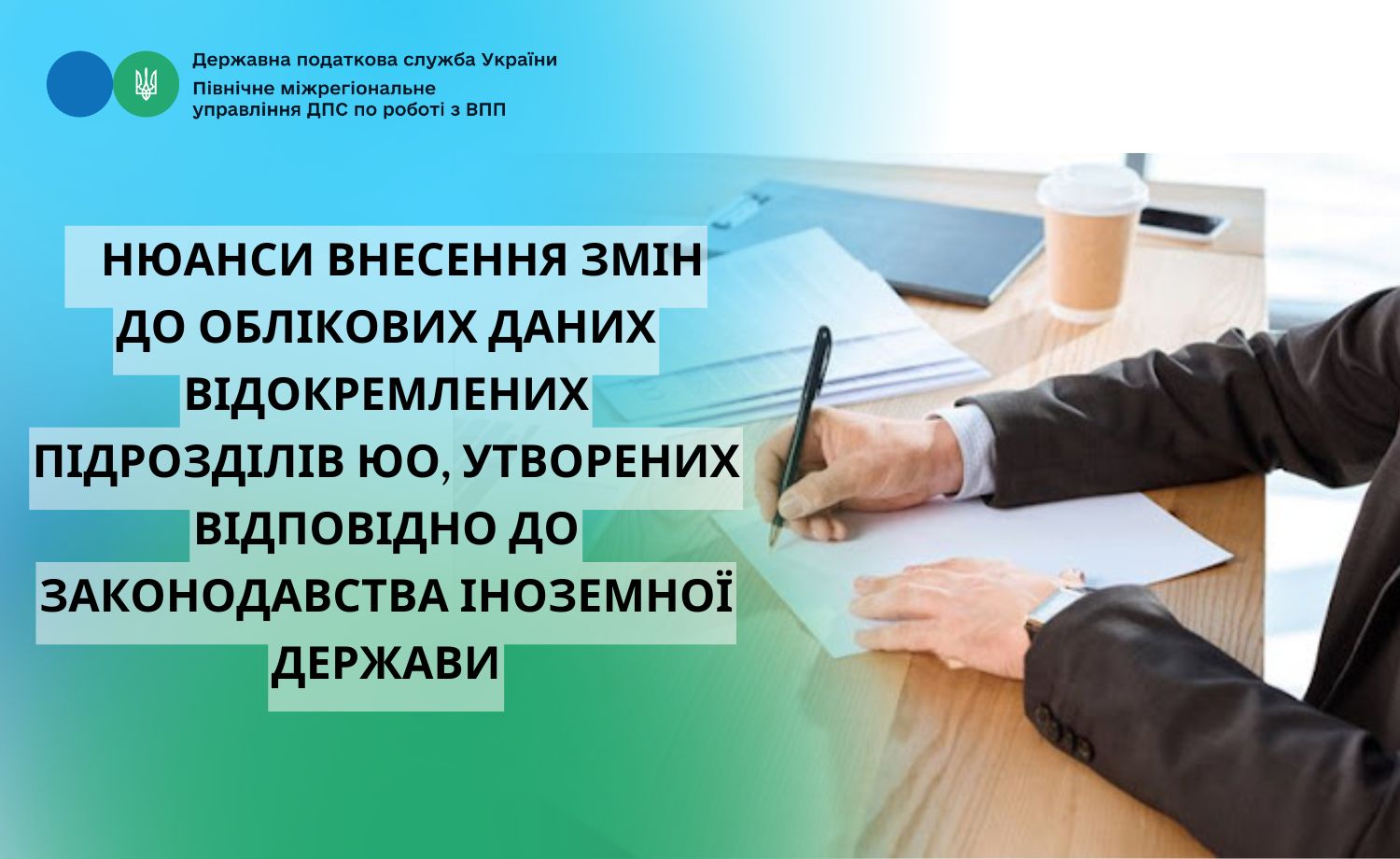 Внесення змін до облікових даних (зміна керівника, місцезнаходження тощо, крім відомостей про особу, відповідальну за ведення податкового обліку) відокремлених підрозділів юридичних осіб, утворених відповідно до законодавства іноземної держави, здійснюється контролюючими органами на підставі інформації, отриманої з ЄДР, без подання документів такими платниками податків до контролюючих органів.