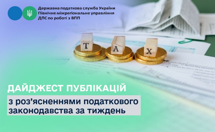 Державна податкова служба України надає дайджест публікацій з роз’ясненнями податкового законодавства, які були розміщені на вебпорталі ДПС протягом тижня.