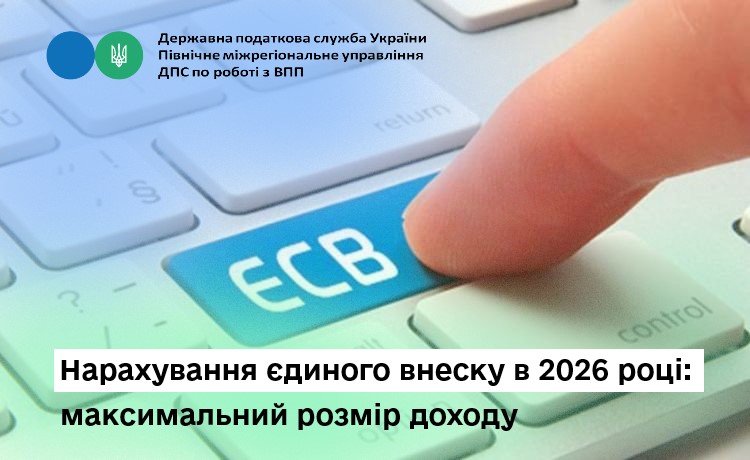 Північне міжрегіональне управління ДПС по роботі з великими платниками податків звертає увагу, що статтею 32 Закону України від 03 грудня 2025 року № 4695-IX «Про Державний бюджет України на 2026 рік» установлено, що у 2026 році розмір максимальної величини бази нарахування єдиного внесок на загальнообов’язкове державне соціальне страхування – максимальної суми доходу застрахованої особи на місяць, на яку нараховується єдиний внесок, визначеної Законом України від 08 липня 2010 року № 2464-VI «Про збір та облік єдиного внеску на загальнообов’язкове державне соціальне страхування», дорівнює: