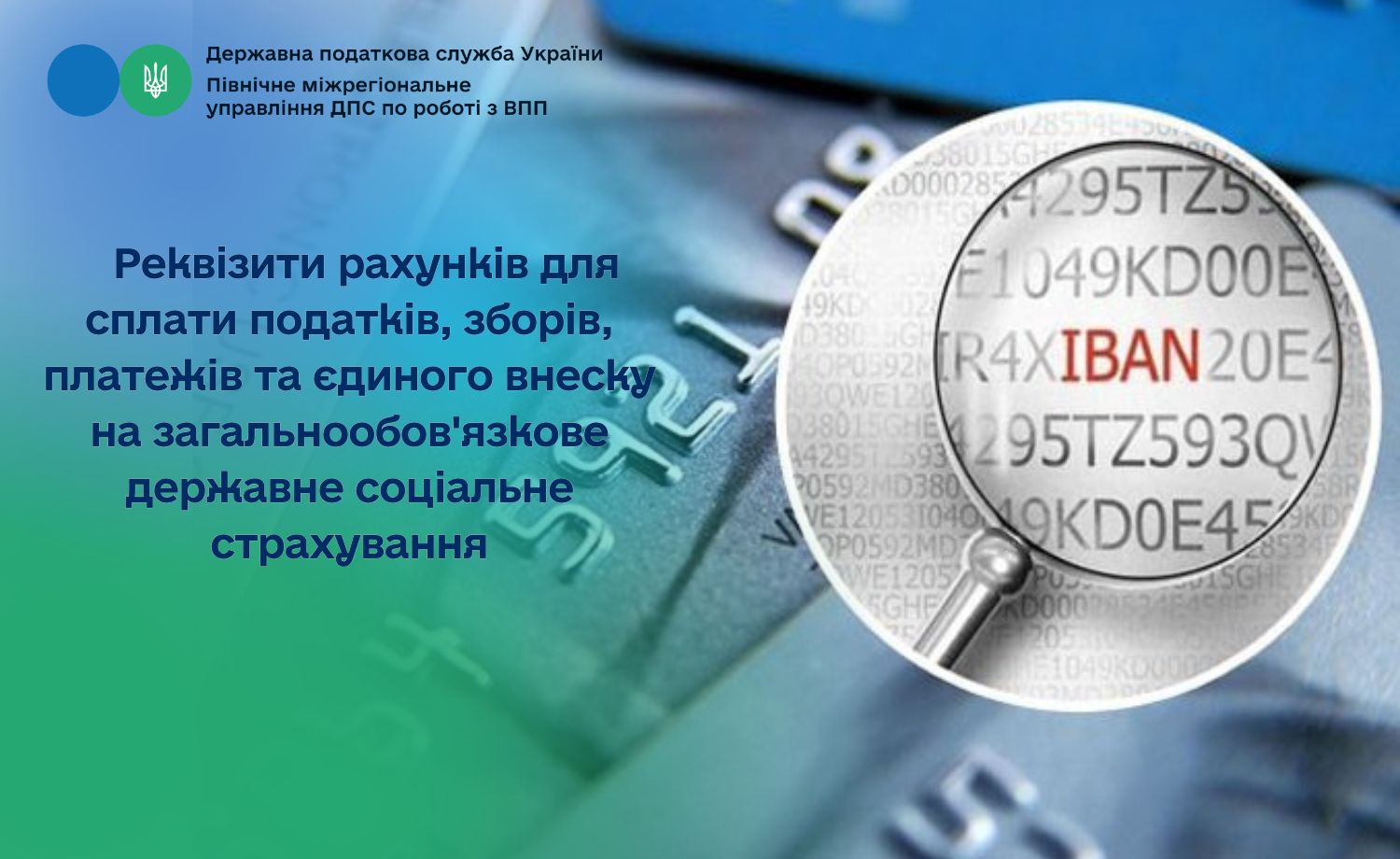 Північне міжрегіональне управління ДПС по роботі з великими платниками податків повідомляє, що актуальні реквізити рахунків для сплати податків, зборів, платежів до державного та місцевого бюджетів, а також рахунки для сплати єдиного внеску на загальнообов'язкове державне соціальне страхування, відкриті Державною казначейською службою України, розміщенні на офіційному сайті Державної податкової служби України в розділі «Рахунки для сплати платежів» «Північне міжрегіональне управління ДПС по роботі з великими платниками податків» за посиланням https://nvp.tax.gov.ua/.