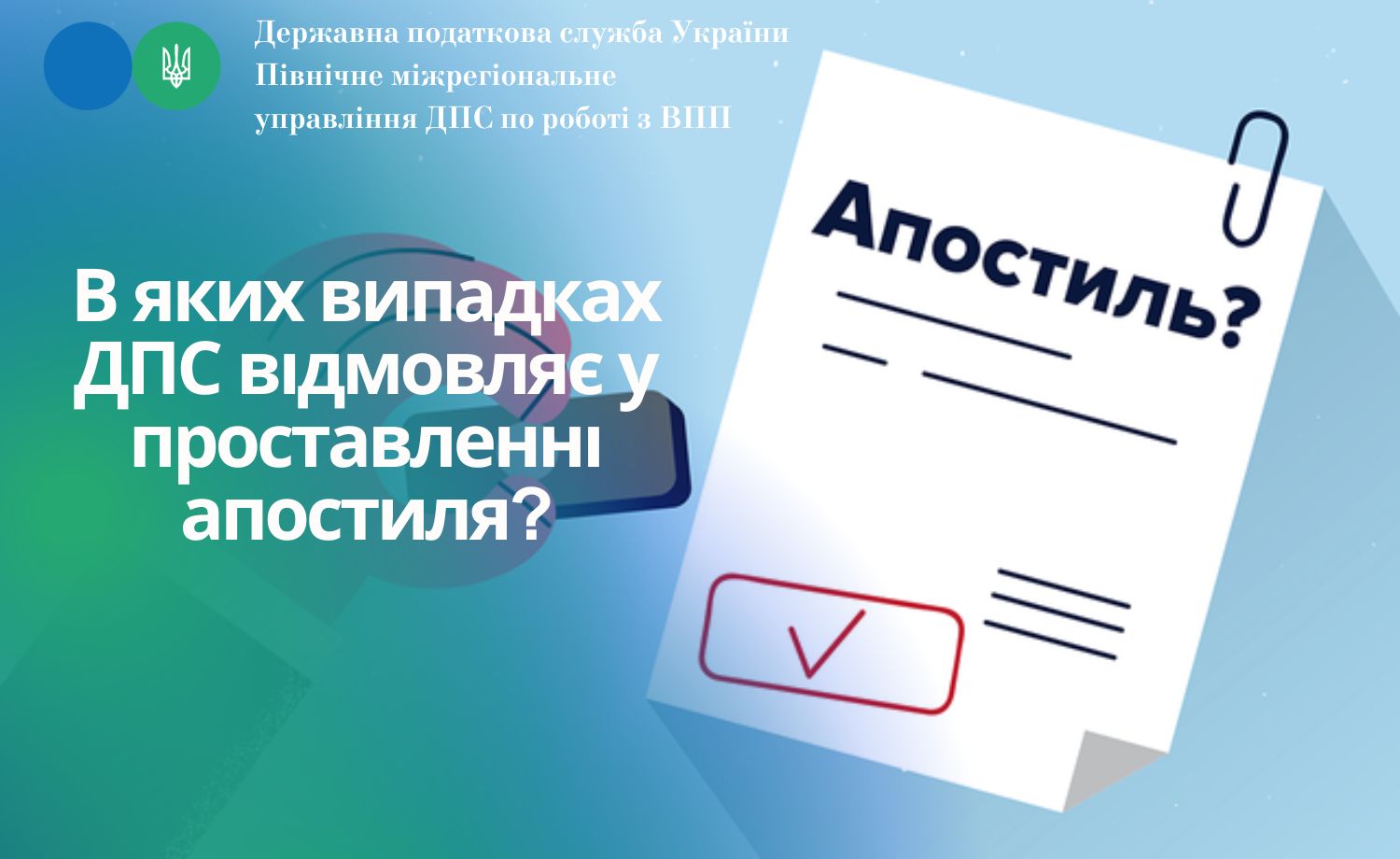 Північне міжрегіональне управління ДПС по роботі з великими платниками податків звертає увагу, що правила проставлення апостиля на офіційних документах, призначених для використання на території інших держав, затверджені спільним наказом Міністерства закордонних справ України, Міністерства внутрішніх справ України, Міністерства освіти і науки України, Міністерства фінансів України, Міністерства юстиції України від 17.03.2023 №125/209/293/139/999/5 (далі – Правила).