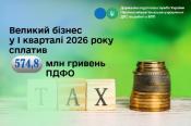 Великий бізнес у І кварталі 2026 року сплатив 574,8 млн гривень ПДФО