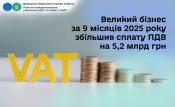 Великий бізнес за 9 місяців 2025 року збільшив сплату ПДВ на 5,2 млрд грн
