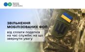Самозайняті особи, які мобілізовані або підписали контракт на військову службу, звільняються від сплати податків. Умова – якщо вони зареєстровані ФОП або суб’єктом незалежної професійної діяльності до дати призову або укладення контракту.