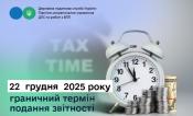 Північне міжрегіональне управління ДПС по роботі з великими платниками податків нагадує платникам податків, що 22 грудня 2025 року - це граничний термін подання наступної податкової звітності за листопад 2025 року: