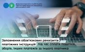 Заповнення обов’язкових реквізитів платіжних інструкцій під час сплати податків, зборів, інших платежів за іншого платника