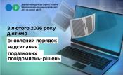 Північне міжрегіональне управління ДПС по роботі з великими платниками податків нагадує, що з 26 лютого 2026 року в Україні застосовуватиметься оновлений порядок надсилання податкових повідомлень-рішень (ППР).